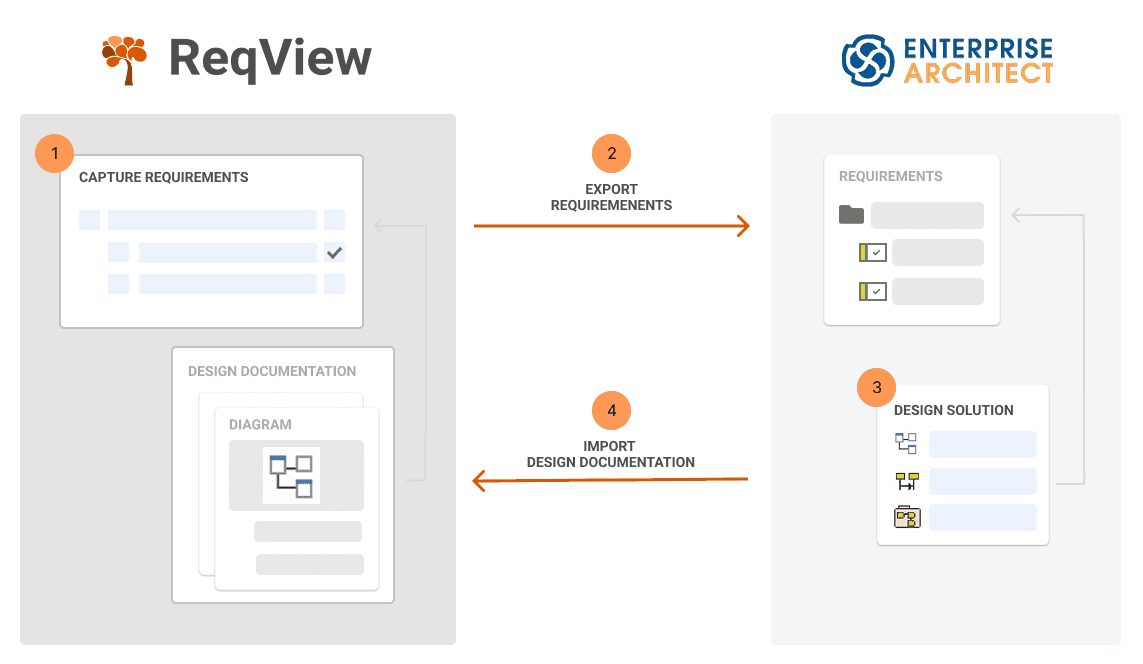 Connect ReqView with Sparx Systems Enterprise Architect (EA) to benefit from an integrated Model-Based Systems Engineering (MBSE) solution. EA Integration
