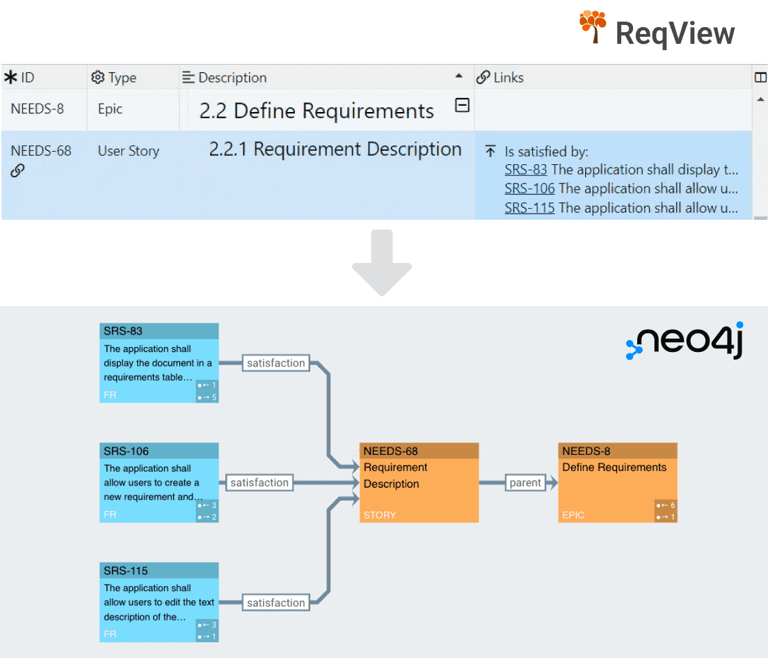 Track requirements changes in Git or SVN same as source code. Benefit from human-readable JSON format. Integrate with your favorite tools.