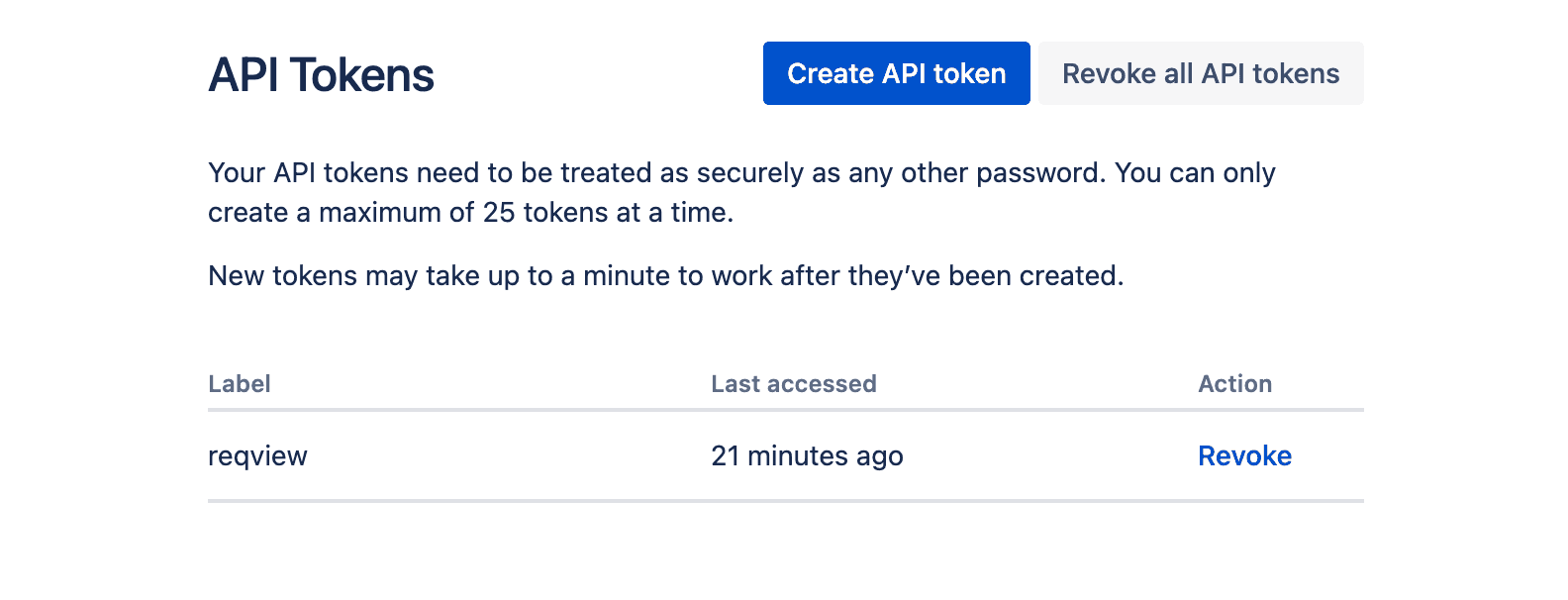 For security reasons, ReqView uses Jira API tokens to access Jira projects (not passwords). You need to create your private API token in Jira Cloud API Tokens screen: